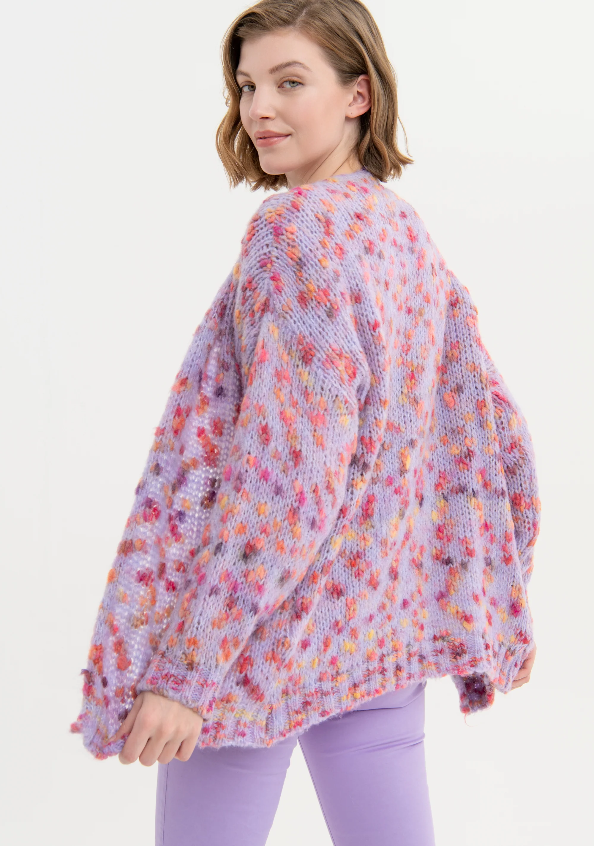 Cardigan over aperto con lana