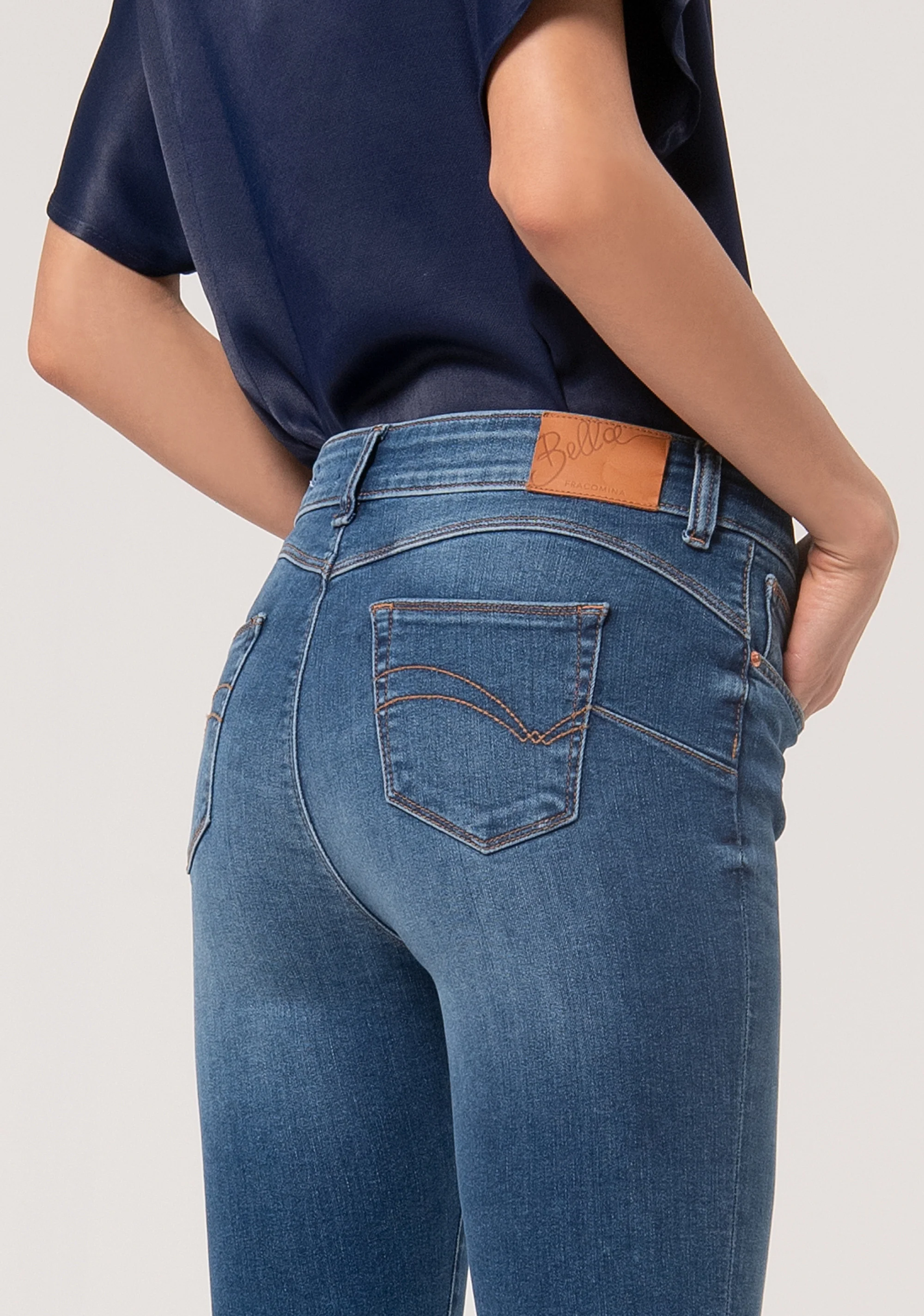 Jeans slim effetto perfect shape in denim stretch con lavaggio medio