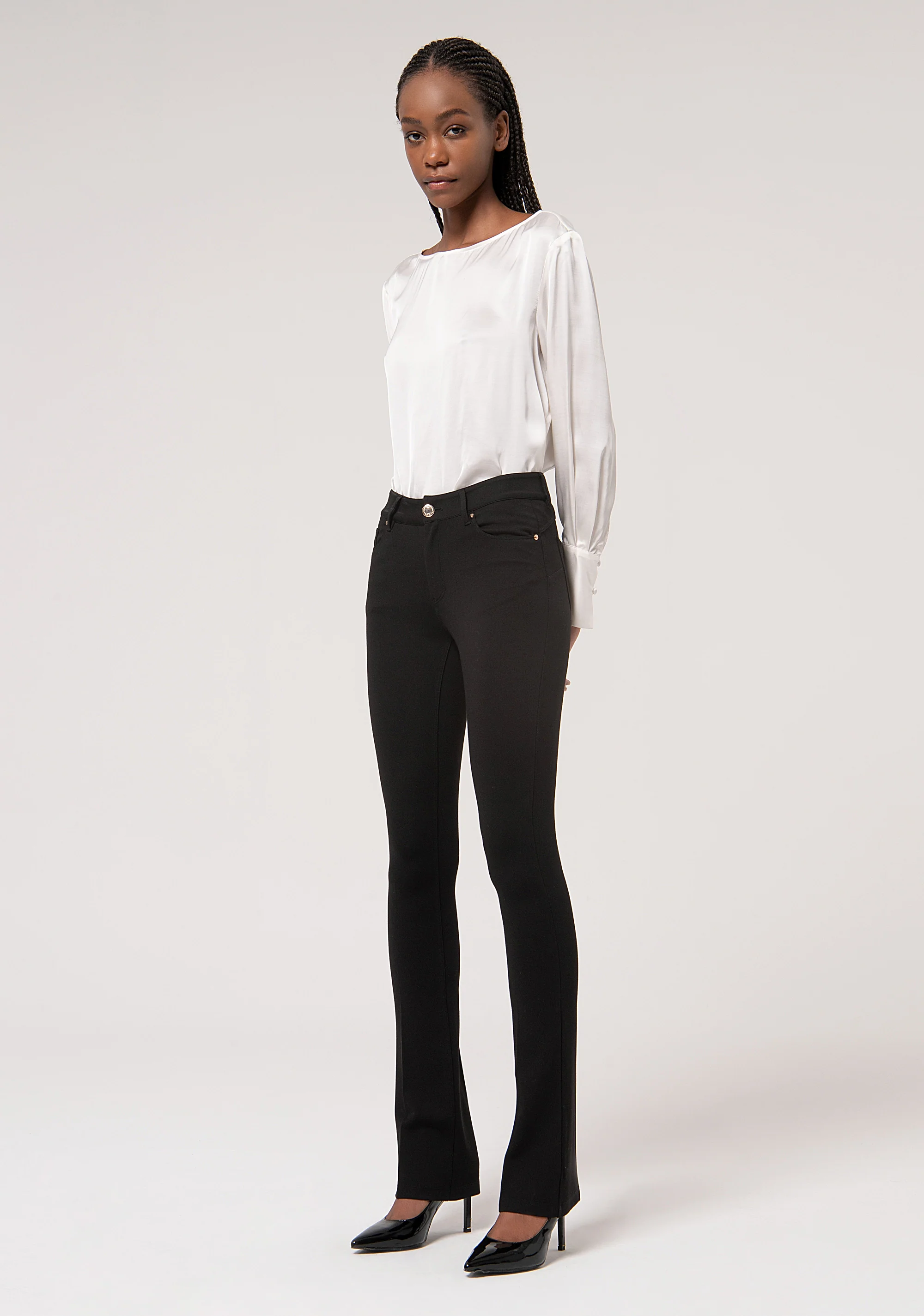 Pantalone regular effetto perfect shape in tessuto stretch, vita regolare, 5 tasche, e con fondo dritto.